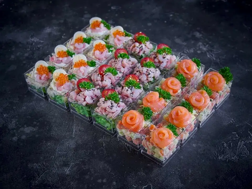 - Салат Оливье с лососем - 8 порций по 50 г